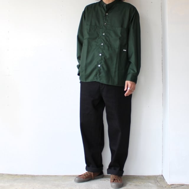 バンドカラーシャツをベースに、ボックス型のリラックスシルエットで仕上げたamne定番デザイン。