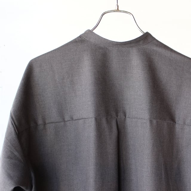 バンドカラーシャツをベースに、ボックス型のリラックスシルエットで仕上げたamne定番デザイン。