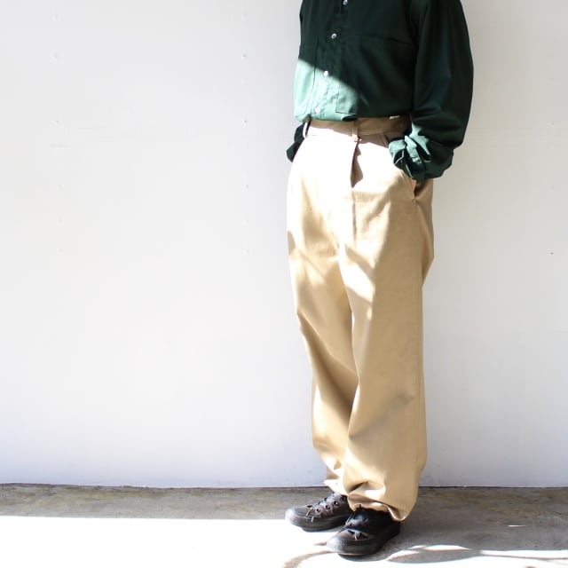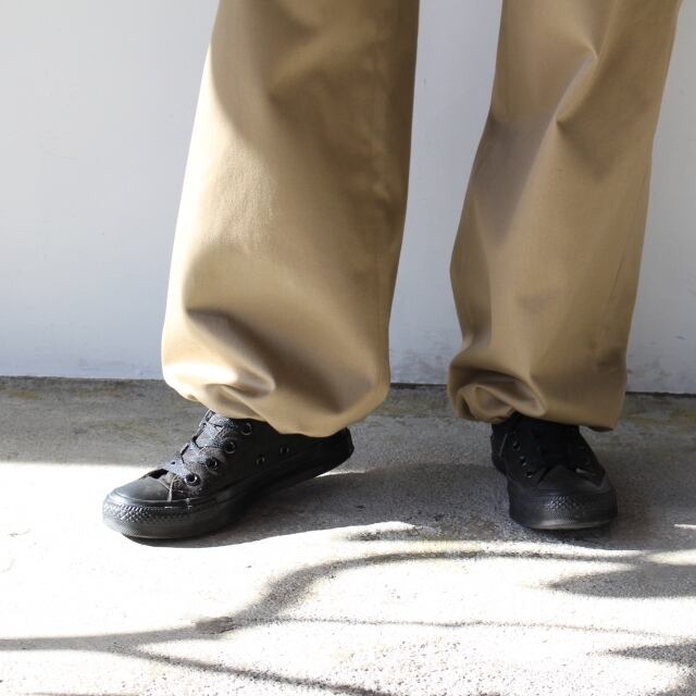 高密度に織られたチノクロスを使い、ミリタリーパンツのデザインで仕上げたボトム。