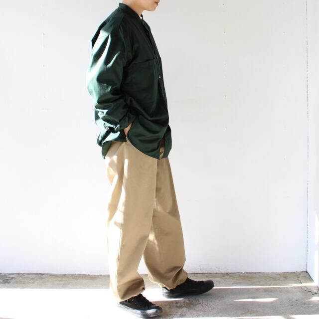 全体的に太めなシルエットでイージーパンツのような要素も入れつつ、上品さも加えた大人のチノパン。