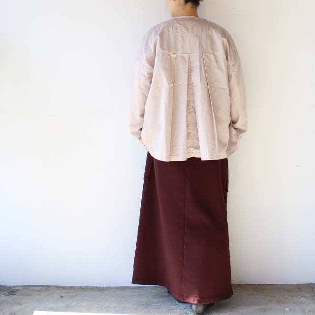 背面のプリーツを大きくとることで、後ろ身頃から裾にかけて綺麗に広がるシルエットに仕上げています。