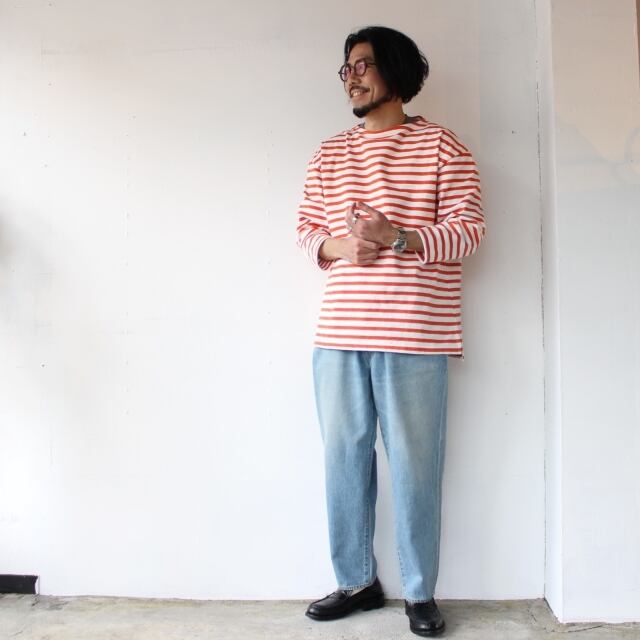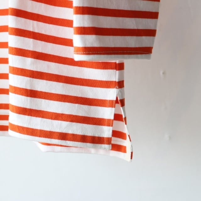 肉厚で洗っても縮みの少ない度詰め生地を使い、いい意味で経年変化のない、そのまま長く愛用できるカットソーに仕上がっています。