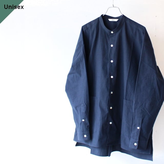 バンドカラーシャツをベースに、ボックス型のリラックスシルエットで仕上げたamne定番デザイン。