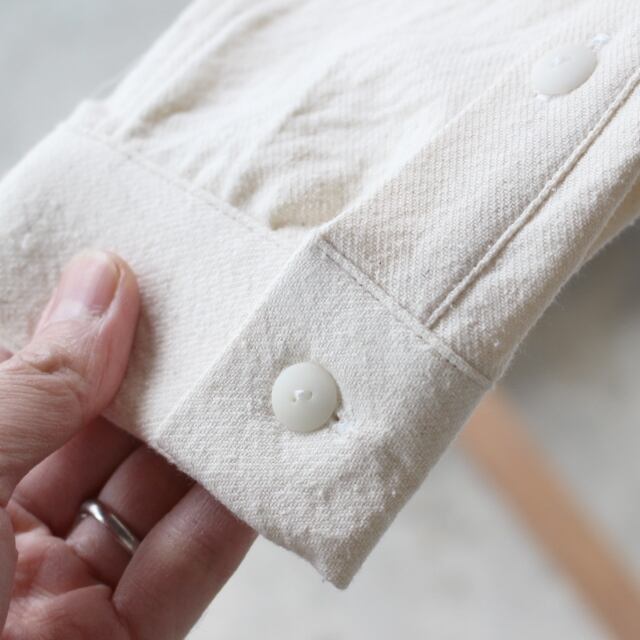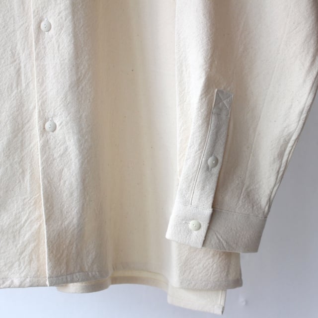 身幅にゆとりを持たせたボックスシルエットに、袖幅は通常のシャツとあまり変わらないすっきりしたディテールに仕上げた