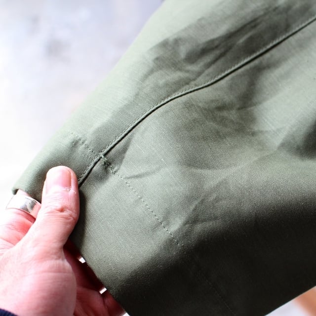 ヘンプ特有のネップ感が粗野感を生み出し、ヴィンテージのような雰囲気に。