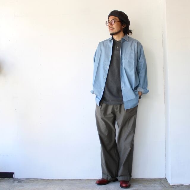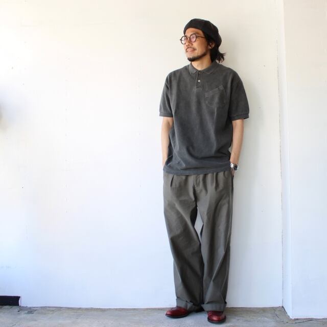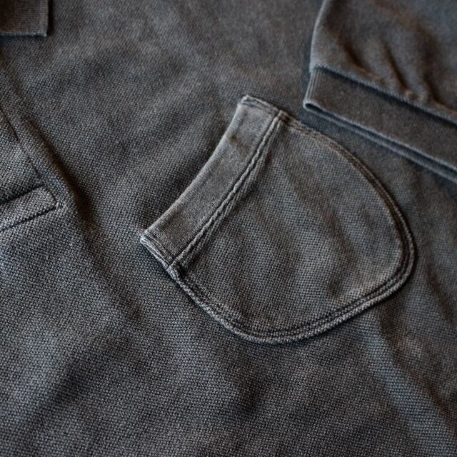オリジナルで作成したヘビーな鹿の子を使用し、製品顔料染め加工を施し、経年変化も楽しみな1枚。