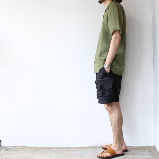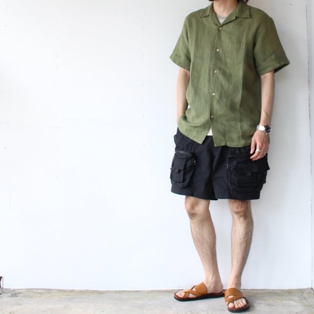 麻100%素材のヘリンボーン織り生地を使用したオープンカラーシャツです。