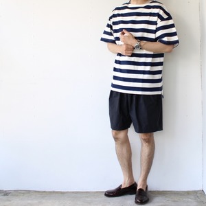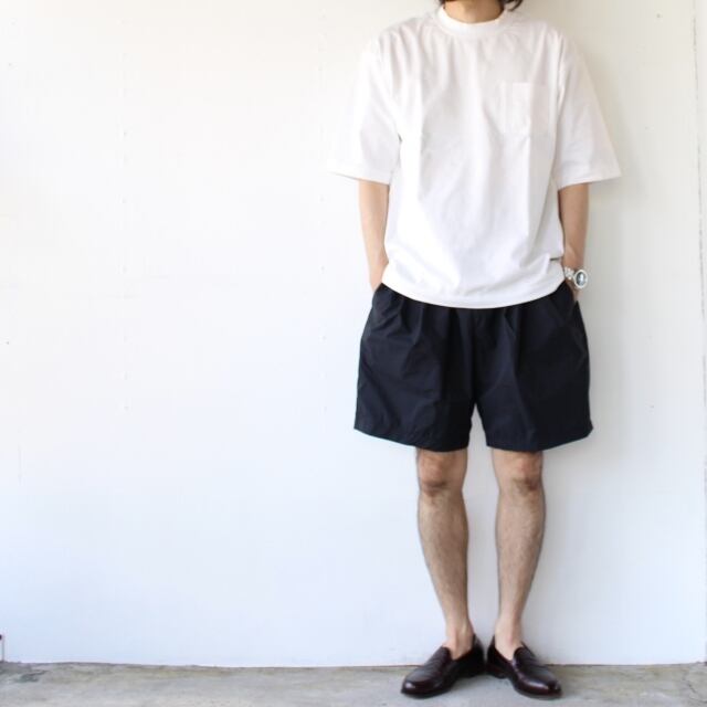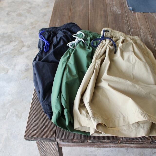 撥水ナイロンを使用した膝上丈のバギーショーツです。