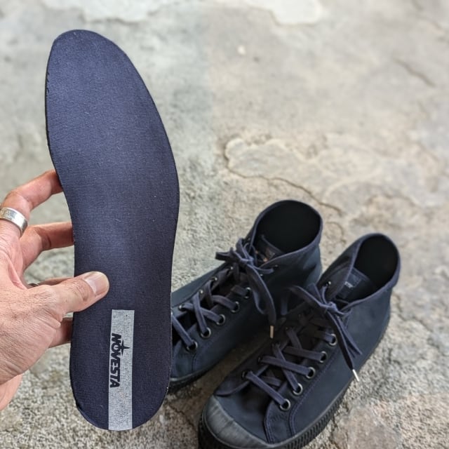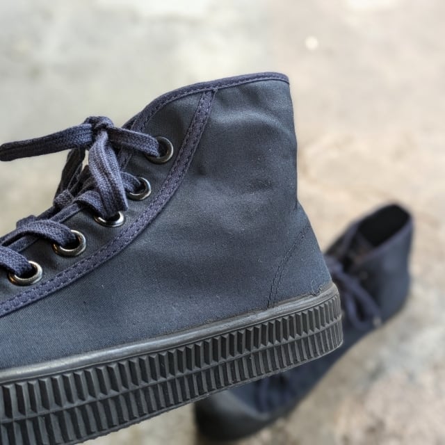素材は天然ゴムのソールに表面にワックスがコーティングされたイギリス製のコットン。