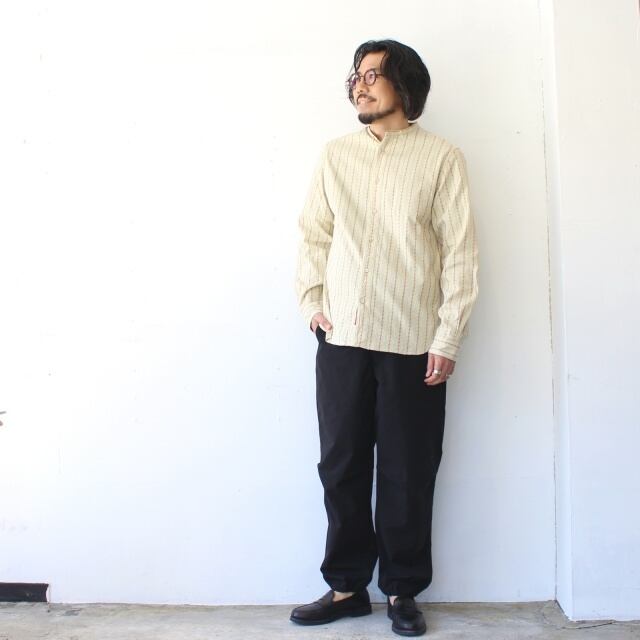 PREQUEL ストライプスタンドアップカラーシャツ Stand-up Collar Shirt (Beige)