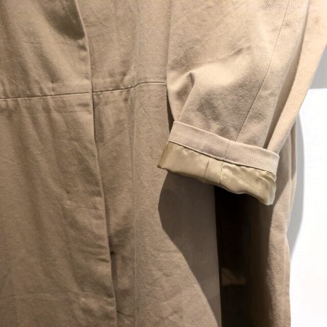 深く入ったサイドスリットが特徴的で、ロングコートでありながらボトムを見せられるのでレイヤードスタイルに適しています。