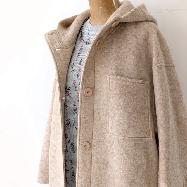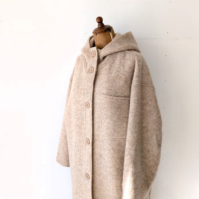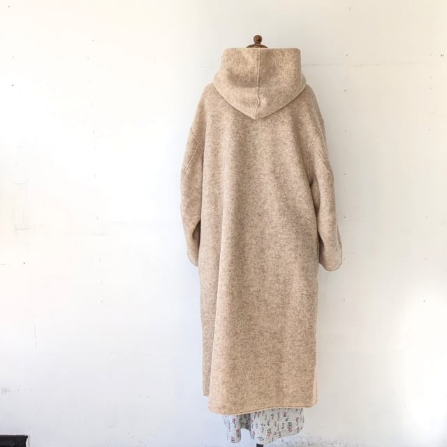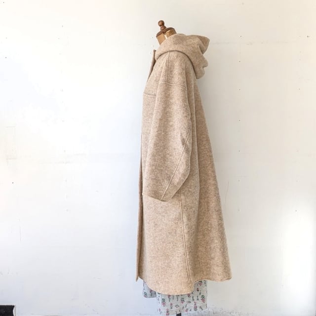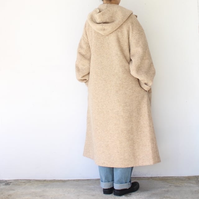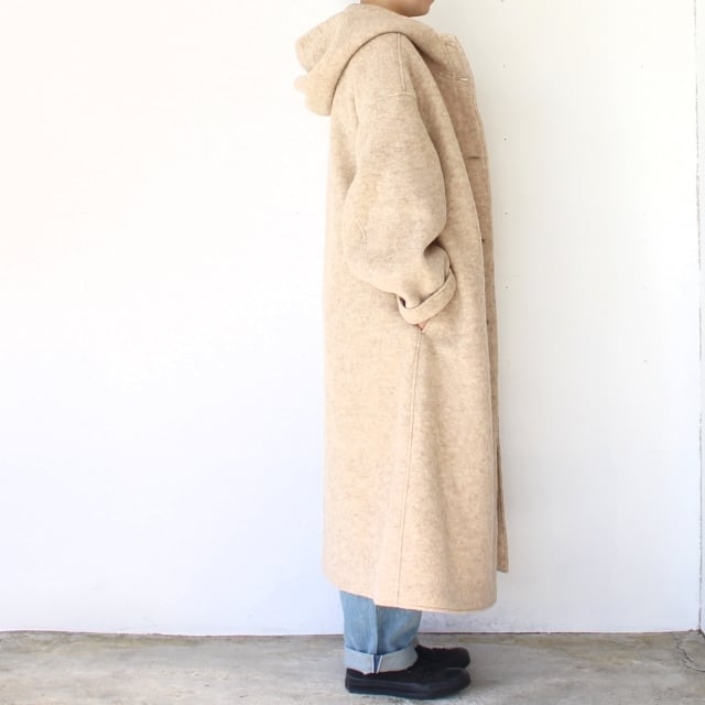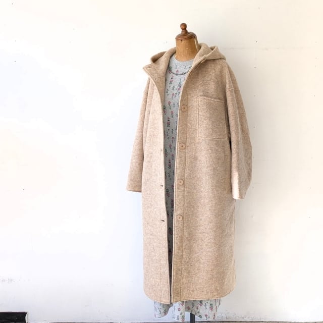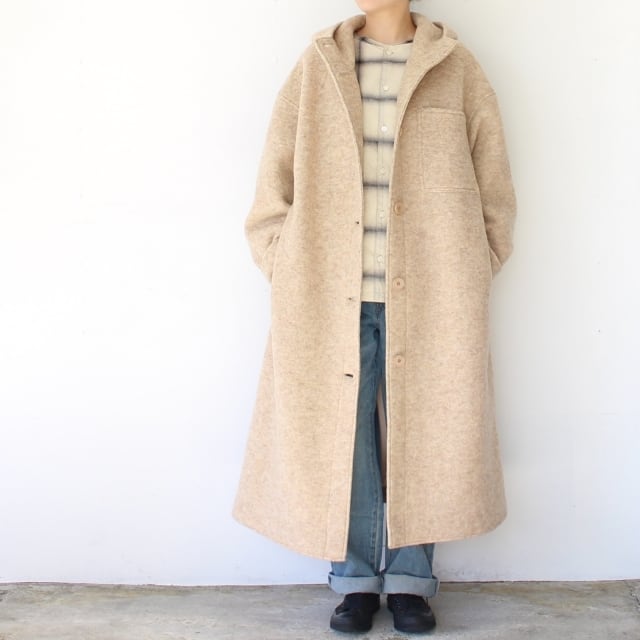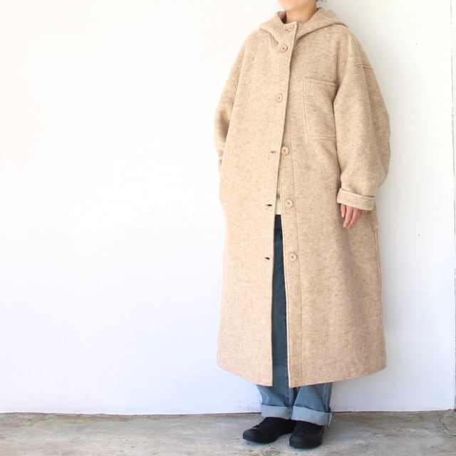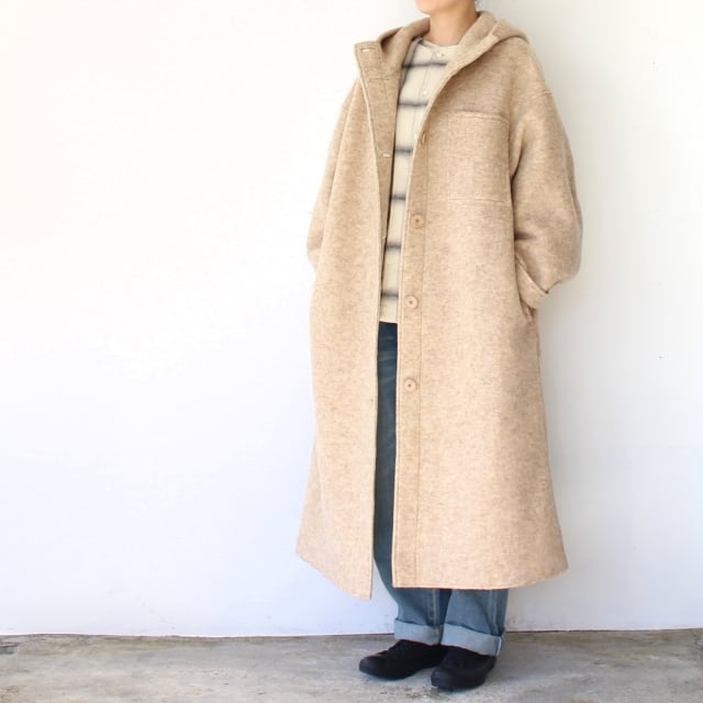 IKITSUKE ウールフードロングコート Wool Hooded Long Coat (Beige)