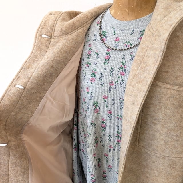 太くて柔らかい毛室が特徴のシェットランドウールを使用した冬のコート。